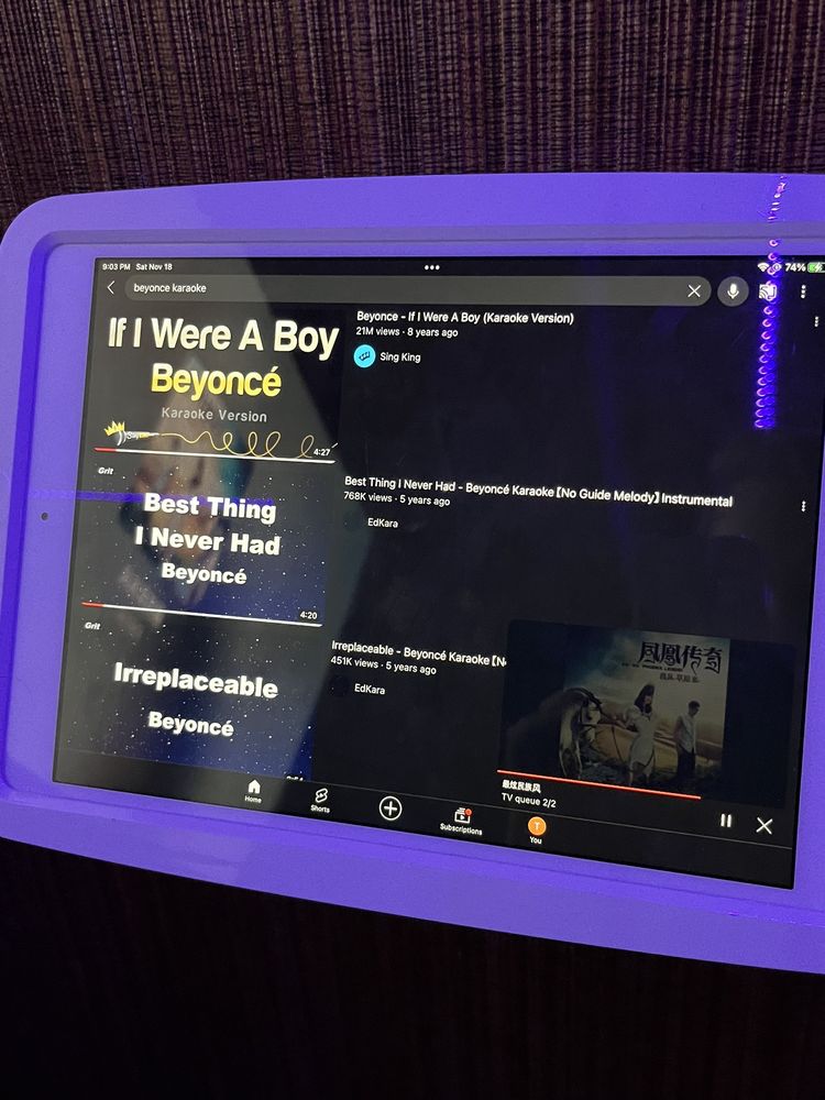 “ We had to wait a bit even though our reservation was at a specific time. Once we got in, our server was really nice about explaining all the packages and whatnot and accommodated us when they ran out of certain drinks. They served us some popcorn, which was nice but I'm not even sure if they had other food because we were focused on karaoke. It was a bit strange that it was Youtube cuz that's something that can be done at home, but it was also convenient I suppose. ”